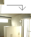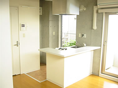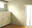 | 通常、通路としてのみ使われる玄関土間がキッチン土間としてカウンター越しに居住空間と対面していることにより、広く開放的なスペースを得ています。躯体には、断熱塗装が施されており、断熱性が確保されています。内部床・天井はコンクリート打放仕上となっています。 |